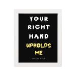 Add a touch of faith and inspiration to your office with our “Infidu Your Right Hand Upholds Me Psalm 63:8 Bible Wall Art.” This piece features a striking design with a black background, yellow accents, and white font, highlighting the powerful message from Psalm 63:8. The verse, “Your Right Hand Upholds Me,” reminds us of God’s unwavering support and strength in our lives. Perfect for home offices, study areas, or any workspace, this Christian wall art not only enhances your decor but also uplifts your spirit daily. Shop now to buy this beautiful bible verse wall art and let it serve as a constant reminder of God’s presence and support in your life.