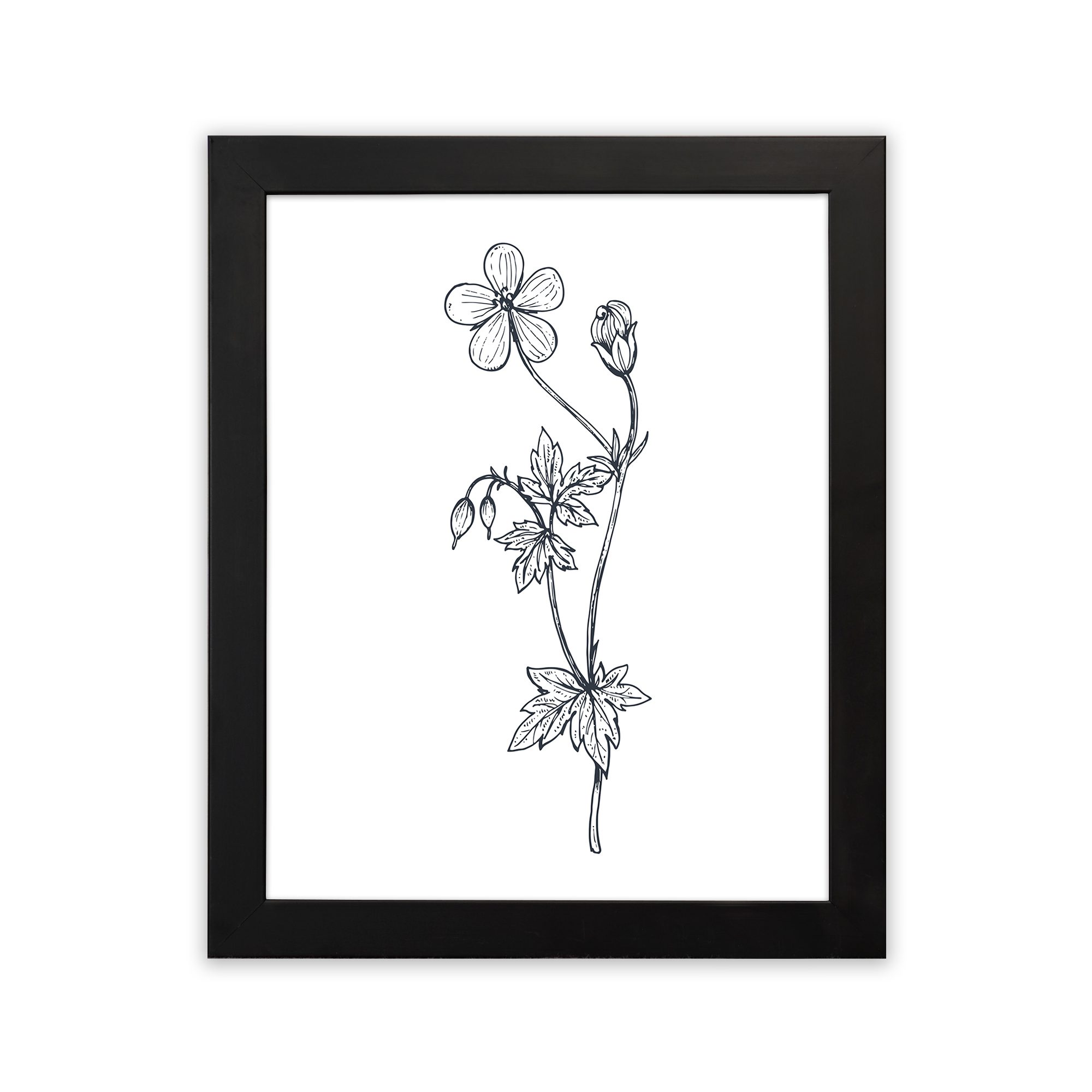 Infidu Botanical Line Art Floral Stem Frame – Minimal Wall Decor – Wall Art- bla33