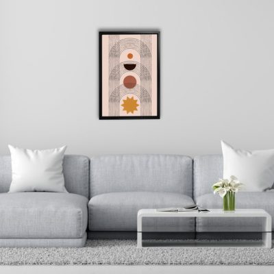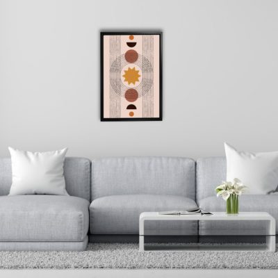 Boho Art – Botanical Boho Art Bohemian Style Floating Canvas Wall Art With Orange and White Colors – Art Model No – Single Frame – bohoart-1f-66-a