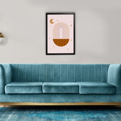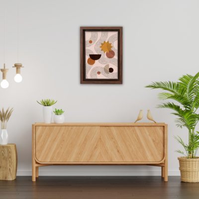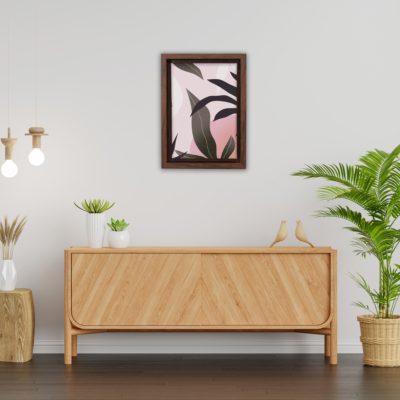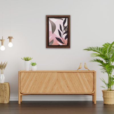 Boho Art – Tropical Leaves and Shapes Boho Style Floating Canvas Wall Art With Brown and Pink Colors – Art Model No – Single Frame – bohoart-1f-65-b
