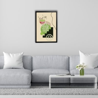 Boho Art – Tropical Leaves and Shapes Boho Style Floating Canvas Wall Art With Green and Beige Colors – Art Model No – Single Frame – bohoart-1f-64-a