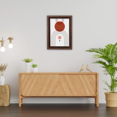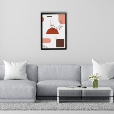 Boho Art – Shapes Boho Minimalist Art Bohemian Style Floating Canvas Wall Art With Red and White Colors – Art Model No – Single Frame – bohoart-1f-58-c
