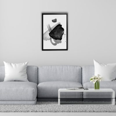 Boho Art – Mid Century Bohemian Style Floating Canvas Wall Art With Gray and White Colors – Art Model No – Single Frame – bohoart-1f-59-c