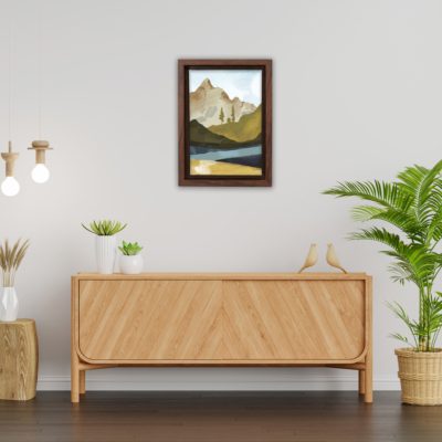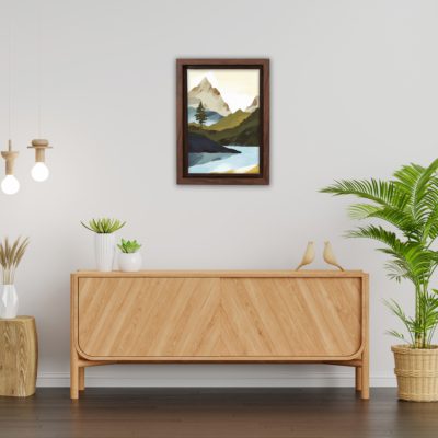 Boho Art – Sun With Mountains Style Floating Canvas Wall Art With Orange and Green Colors – Art Model No – Single Frame – bohoart-1f-61-a
