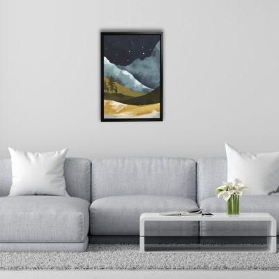 Boho Art – Mid Century Bohemian Style Floating Canvas Wall Art With Gray and White Colors – Art Model No – Single Frame – bohoart-1f-59-b