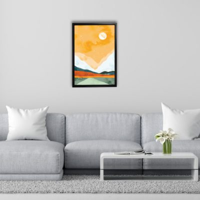 Boho Art – Sun With Mountains Style Floating Canvas Wall Art With Orange and Green Colors – Art Model No – Single Frame – bohoart-1f-61-c