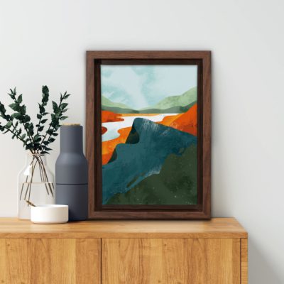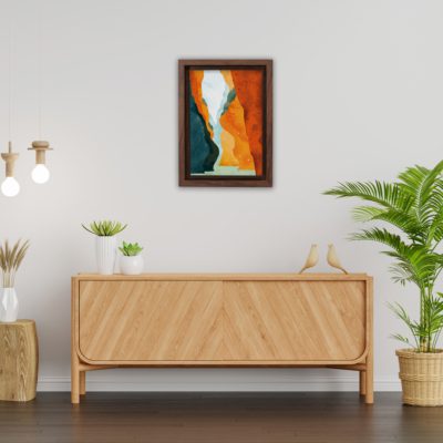 Boho Art – Sun With Mountains Style Floating Canvas Wall Art With Orange and Green Colors – Art Model No – Single Frame – bohoart-1f-61-b