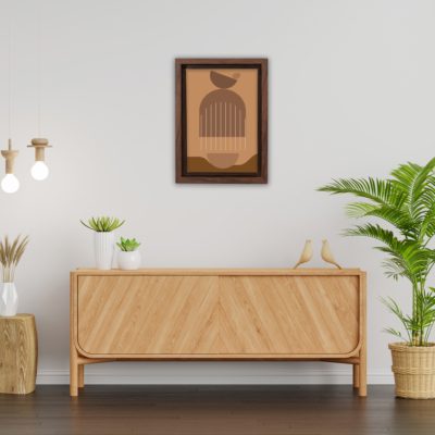 Boho Art – Botanical Style Floating Canvas Wall Art With Brown and Beige Colors – Art Model No – Single Frame – bohoart-1f-62-a