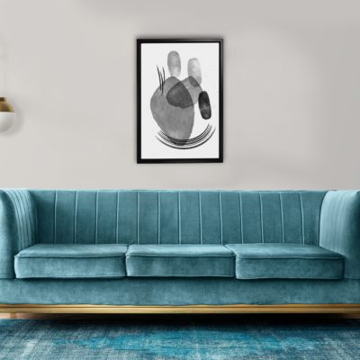 Boho Art – Mid Century Bohemian Style Floating Canvas Wall Art With Gray and White Colors – Art Model No – Single Frame – bohoart-1f-59-a