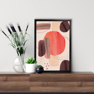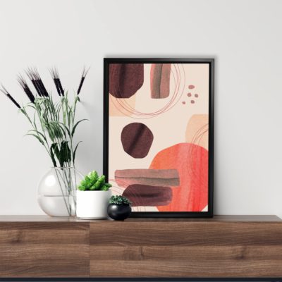 Boho Art – Botanical Style Floating Canvas Wall Art With Brown and Red Colors – Art Model No – Single Frame – bohoart-1f-74-c