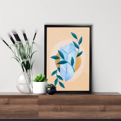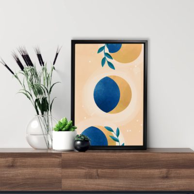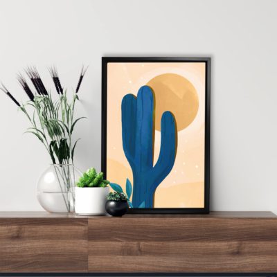 Boho Art – Sun With Desert And Plants Style Floating Canvas Wall Art With Blue and Orange Colors – Art Model No – Single Frame – bohoart-1f-75-b