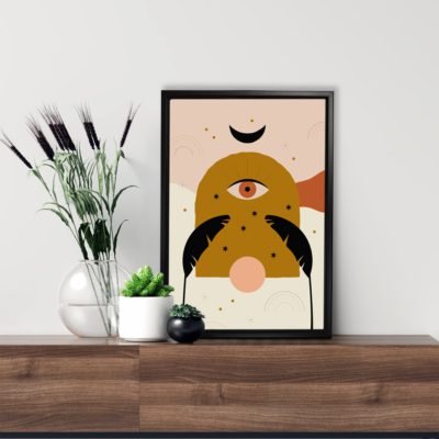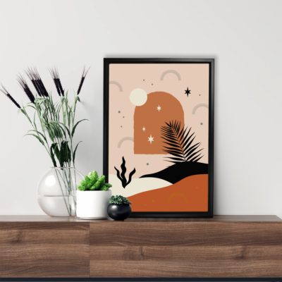 Boho Art – Sun With Desert And Plants Style Floating Canvas Wall Art With Blue and Orange Colors – Art Model No – Single Frame – bohoart-1f-75-a