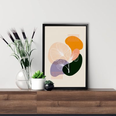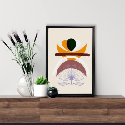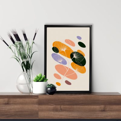 Boho Art – Botanical Style Floating Canvas Wall Art With Orange and Multi Colors – Art Model No – Single Frame – bohoart-1f-77-b