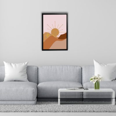 Boho Art – Sun With Plants Style Floating Canvas Wall Art With Orange and Blue Colors – Art Model No – Single Frame – bohoart-1f-70-a