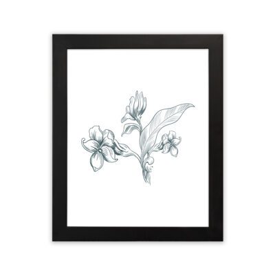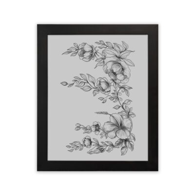 Infidu Botanical Line Art Grey Floral Sketch Frame – Wall Decor – Wall Art- bla43