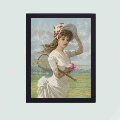 Infidu Woman in white dress holding flowers and tennis racket (1887) in high resolution Vintage Art