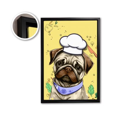 Infidu Pug Dog Culinary Companion Pet Art Floating Canvas Wall Decor – Pug in Chef’s Cap