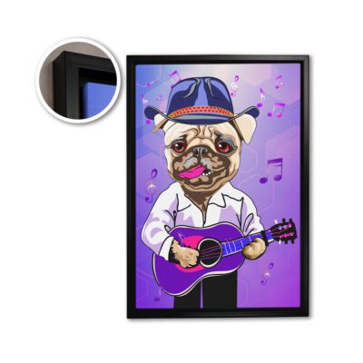 Infidu Bulldog Rockstar Pet Art Floating Canvas Wall Decor – Musician Bulldog with Guitar