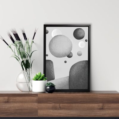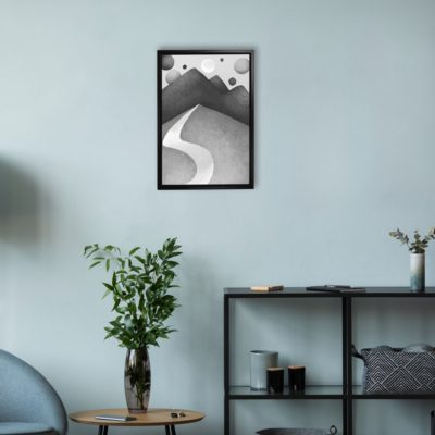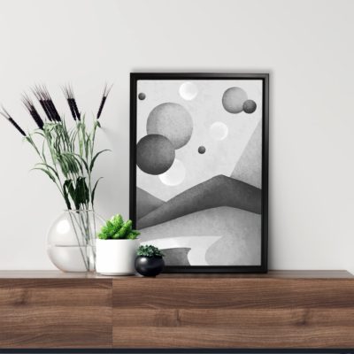 Boho Art – Mid Century Boho Style Floating Canvas Wall Art With Gray and White Colors – Art Model No – Single Frame – bohoart-1f-72-b