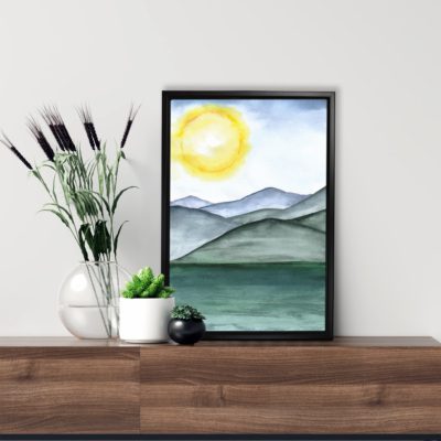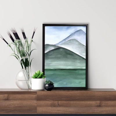 Boho Art – Botanical Boho Art Bohemian Style Floating Canvas Wall Art With Green and Blue Colors – Art Model No – Single Frame – bohoart-1f-71-b