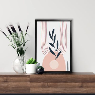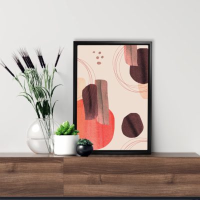 Boho Art – Botanical Style Floating Canvas Wall Art With Brown and Red Colors – Art Model No – Single Frame – bohoart-1f-74-c