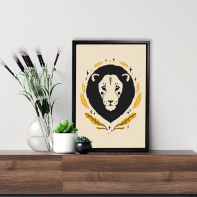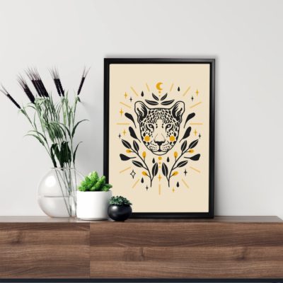 Boho Art – Botanical Boho Style Floating Canvas Minimalist Wall Art With Black and Yellow Colors – Art Model No – Single Frame – bohoart-1f-67-c