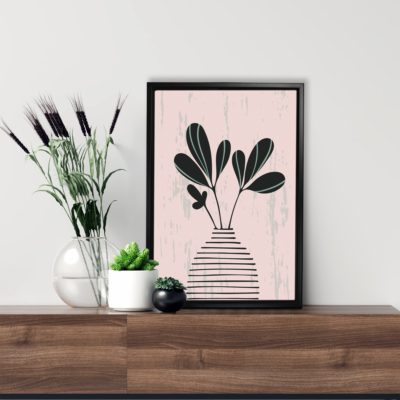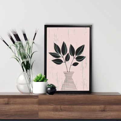 Boho Art – Botanical Boho Style Floating Canvas Minimalist Wall Art With Black and Yellow Colors – Art Model No – Single Frame – bohoart-1f-67-b