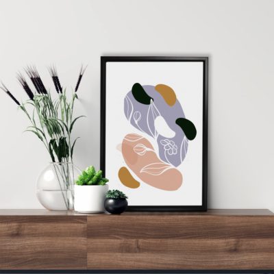 Boho Art – Mid Century Boho Style Floating Canvas Wall Art With Brown and Purple Colors – Art Model No – Single Frame – bohoart-1f-69-c