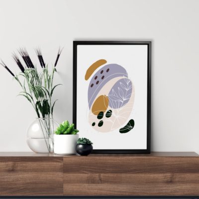 Boho Art – Mid Century Boho Style Floating Canvas Wall Art With Brown and Purple Colors – Art Model No – Single Frame – bohoart-1f-69-b