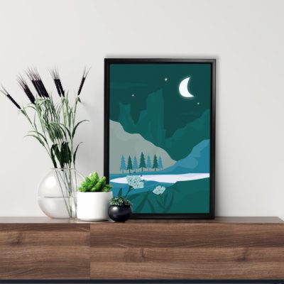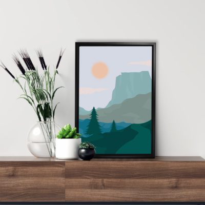Boho Art – Sun With Plants Style Floating Canvas Wall Art With Green and Blue Colors – Art Model No – Single Frame – bohoart-1f-70-b