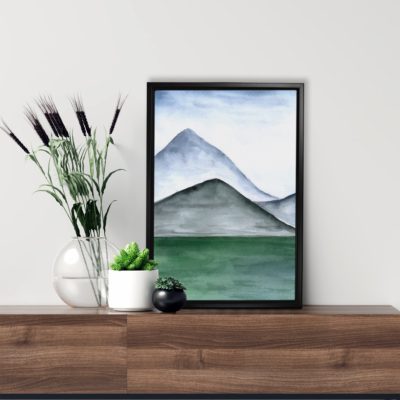 Boho Art – Botanical Boho Art Bohemian Style Floating Canvas Wall Art With Green and Blue Colors – Art Model No – Single Frame – bohoart-1f-71-a