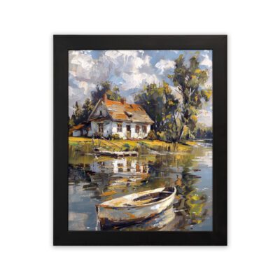 Infidu Lake Houseboat Wall Art Calm Nature Scenic Design – Impressionist Painting Art – ipa28