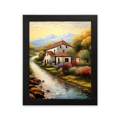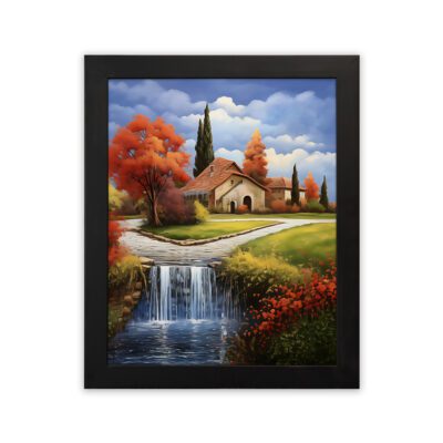 Infidu Village House Waterfall Wall Art Nature Scenic Frame – Impressionist Painting Art – ipa31