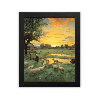 Infidu Sheep Farm Sunset Wall Art Rural – Impressionist Painting Art – ipa14