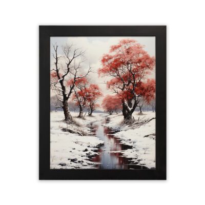 Infidu Snow Red Tree River Wall Art Winter Scenic – Impressionist Painting Art – ipa23