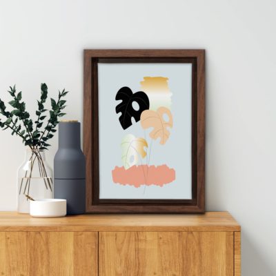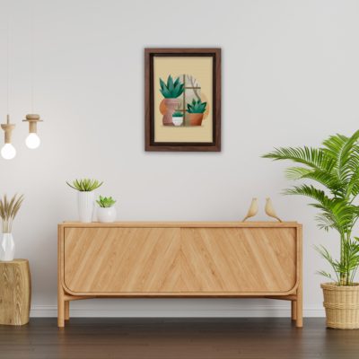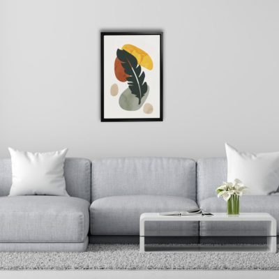 Boho Art – Botanical Boho Style Floating Canvas Minimalist Wall Art With Yellow and Green Colors – Art Model No – Single Frame – bohoart-1f-55-a