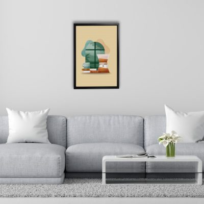 Boho Art – Botanical Boho Style Floating Canvas Minimalist Wall Art With Yellow and Green Colors – Art Model No – Single Frame – bohoart-1f-55-b