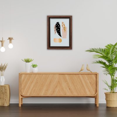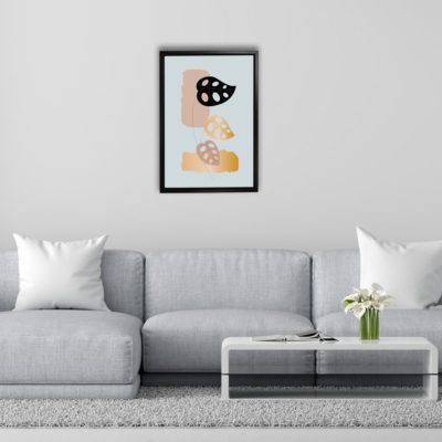 Boho Art – Botanical Boho Style Floating Canvas Minimalist Wall Art With Black and Beige Colors – Art Model No – Single Frame – bohoart-1f-56-a