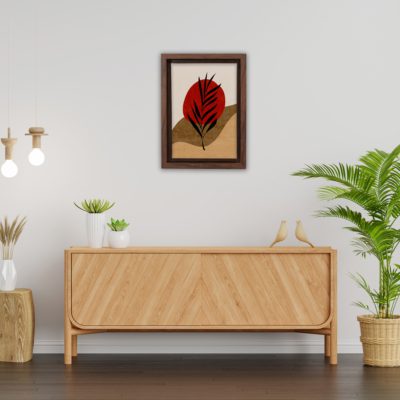 Boho Art – Botanical Boho Style Floating Canvas Minimalist Wall Art With Red and Green Colors – Art Model No – Single Frame – bohoart-1f-55-c