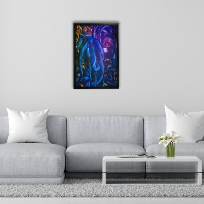 Boho Art – Botanical Boho Art Bohemian Style Floating Canvas Wall Art With Blue and Orange Colors – Art Model No – Single Frame – bohoart-1f-38-c
