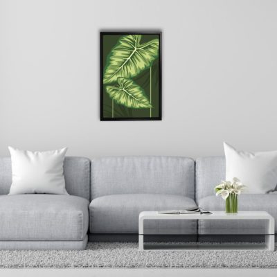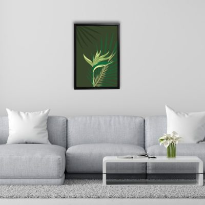 Boho Art – Tropical Leaves Boho Style Floating Canvas Wall Art With Green Colors – Art Model No – Single Frame – bohoart-1f-39-c
