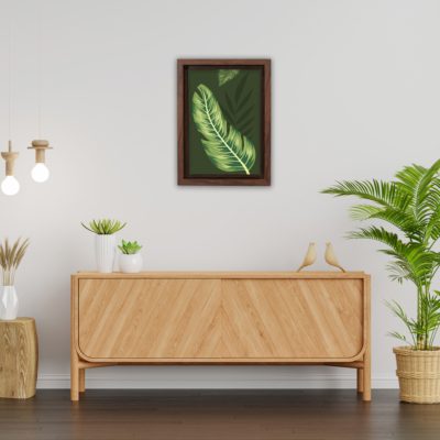 Boho Art – Tropical Leaves Boho Style Floating Canvas Wall Art With Green Colors – Art Model No – Single Frame – bohoart-1f-39-b