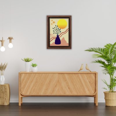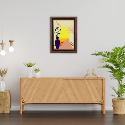 Boho Art – Botanical Boho Style Floating Canvas Minimalist Wall Art With Brown and Beige Colors – Art Model No – Single Frame – bohoart-1f-41-c