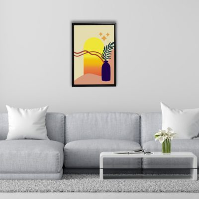 Boho Art – Tropical Leaves and Shapes Boho Minimalist Art Bohemian Style Floating Canvas Wall Art With Yellow and Blue Colors – Art Model No – Single Frame – bohoart-1f-40-a
