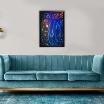Boho Art – Botanical Boho Art Bohemian Style Floating Canvas Wall Art With Blue and Orange Colors – Art Model No – Single Frame – bohoart-1f-38-b