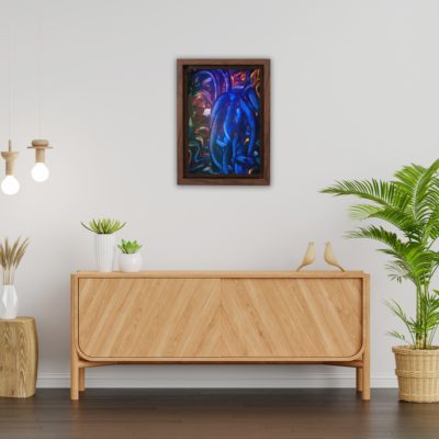 Boho Art – Botanical Boho Style Floating Canvas Minimalist Wall Art With Blue and Red Colors – Art Model No – Single Frame – bohoart-1f-35-c