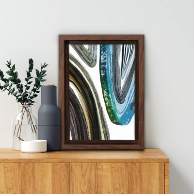 Boho Art – Botanical Boho Style Floating Canvas Minimalist Wall Art With Blue and Green Colors – Art Model No – Single Frame – bohoart-1f-35-b