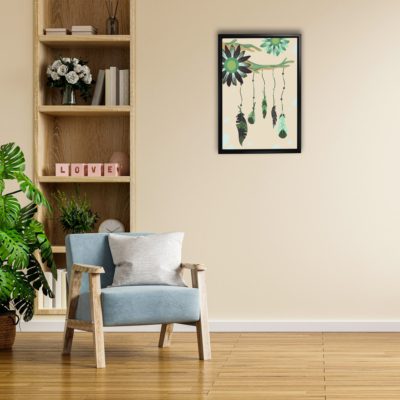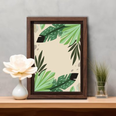 Boho Art – Botanical Boho Art Bohemian Style Floating Canvas Wall Art With Green and Beige Colors – Art Model No – Single Frame – bohoart-1f-26-b