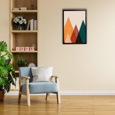 Boho Art – Mid Century Bohemian Style Floating Canvas Wall Art With Orange and Green Colors – Art Model No – Single Frame – bohoart-1f-27-b