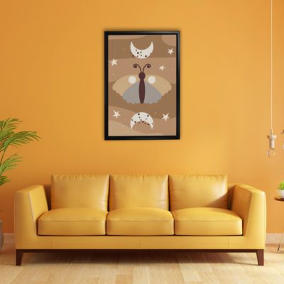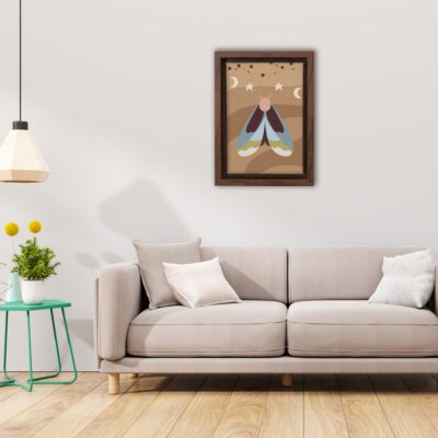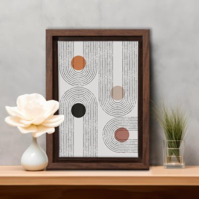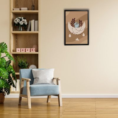 Boho Art – Botanical Boho Art Bohemian Style Floating Canvas Wall Art With Brown and Beige Colors – Art Model No – Single Frame – bohoart-1f-29-b